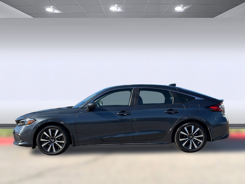 ONE OWNER, CLEAN CARFAX, 2023 Honda Civic Hatchback EX-L, Turbocharged, Remote Engine Start, Moonroof, LED Headlights, Bluetooth Connection, Heated Front Seat(s), Leather Seats, Immobilizer, Lane Keeping Assist, Lane Departure Warning, Blind Spot Monitor, Back-Up Camera, Gray exterior, and Black interior.